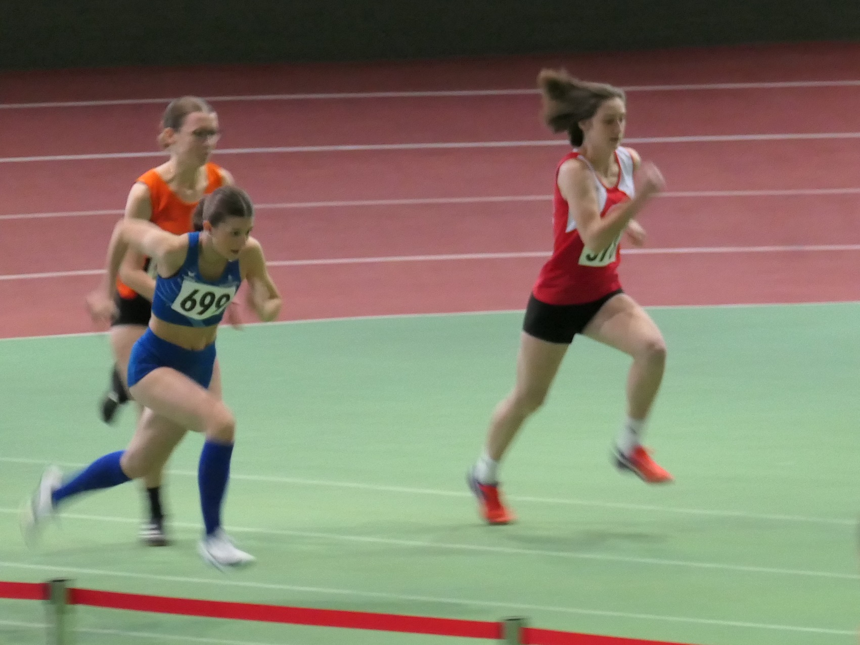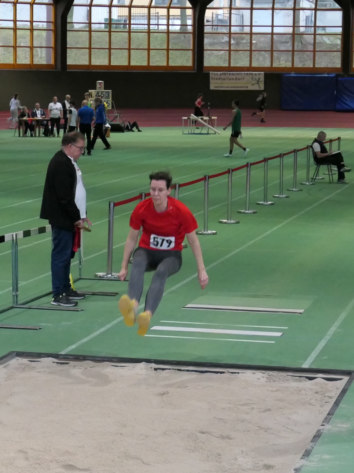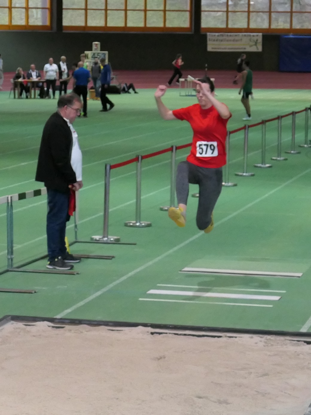 Jana hatte sich dabei gleich die schwierigste Disziplin, den Hochsprung, für den Auftakt ausgesucht. In der Vorbereitung sah alles noch gut aus. Ein guter Anlauf und sichere Sprünge beim Einspringen ließen keinen Raum für Nervosität. Aber die Wettkampfsituation änderte alles, sodass leider schon bei 1,35m der Wettkampf zu Ende war. Etwas besser erging es im Weitsprung. Auch für diese Disziplin gibt es im Winter leider keine Trainingsmöglichkeit. Aber hier konnte sie sich Schritt für Schritt an den Absprungbalken herantasten. Zusammen mit Mareike, die sich ebenfalls für den Weitsprung entschieden hatte, ging es auf die Jagd nach Weitenzentimeter. Am Ende fehlten Jana mit 4,13m und Mareike mit 4,47m jedoch weniger als 10cm um noch in den Endkampf der besten Acht einzugreifen.