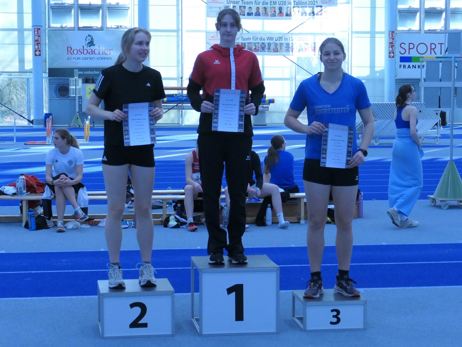 Hs. – Der Einladung des Hessischen Leichtathletikverbandes zu den offenen Kreismeisterschaften nach Frankfurt-Kalbachn in die große Leichtathletikhalle folgten von der TG Hildegard Hassemer, sowie Mareike und Maximilian Weber.